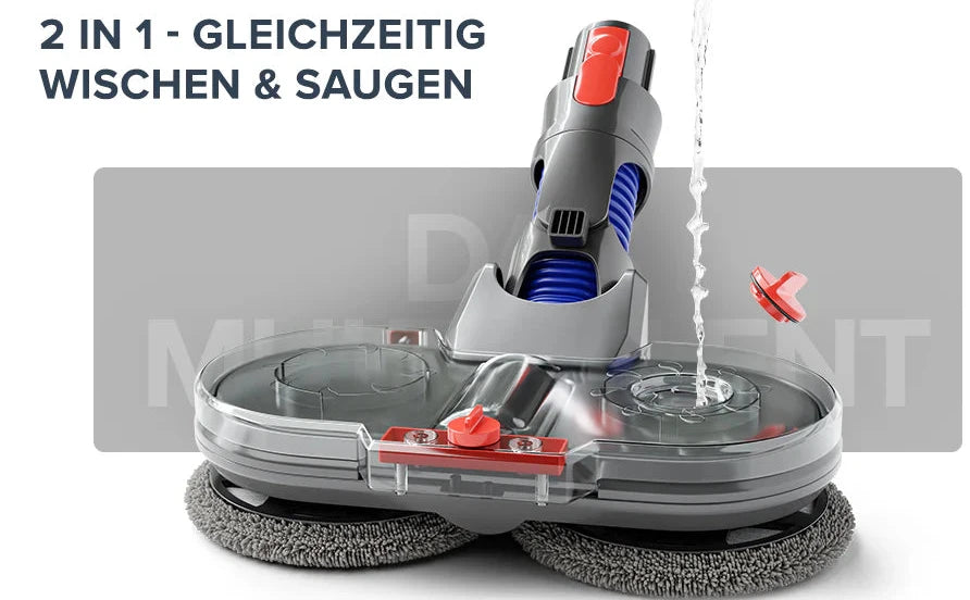 In nur einer Sekunde verwandelt sich dein Dyson-Staubsauger in ein echtes Multitalent er wischt und saugt gleichzeitig. So erstrahlt dein Boden in neuem Glanz, während du Zeit und Mühe sparst.